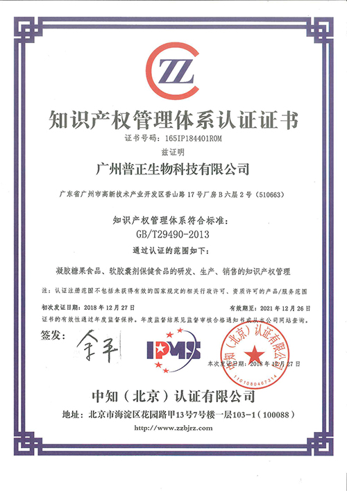 2018年,酵母富鋅凝膠糖果等十二款產(chǎn)品被認(rèn)定為高新技術(shù)產(chǎn)品;榮獲CBME“服務(wù)十年獎”;12月27日通過知識產(chǎn)權(quán)管理體系認(rèn)證;