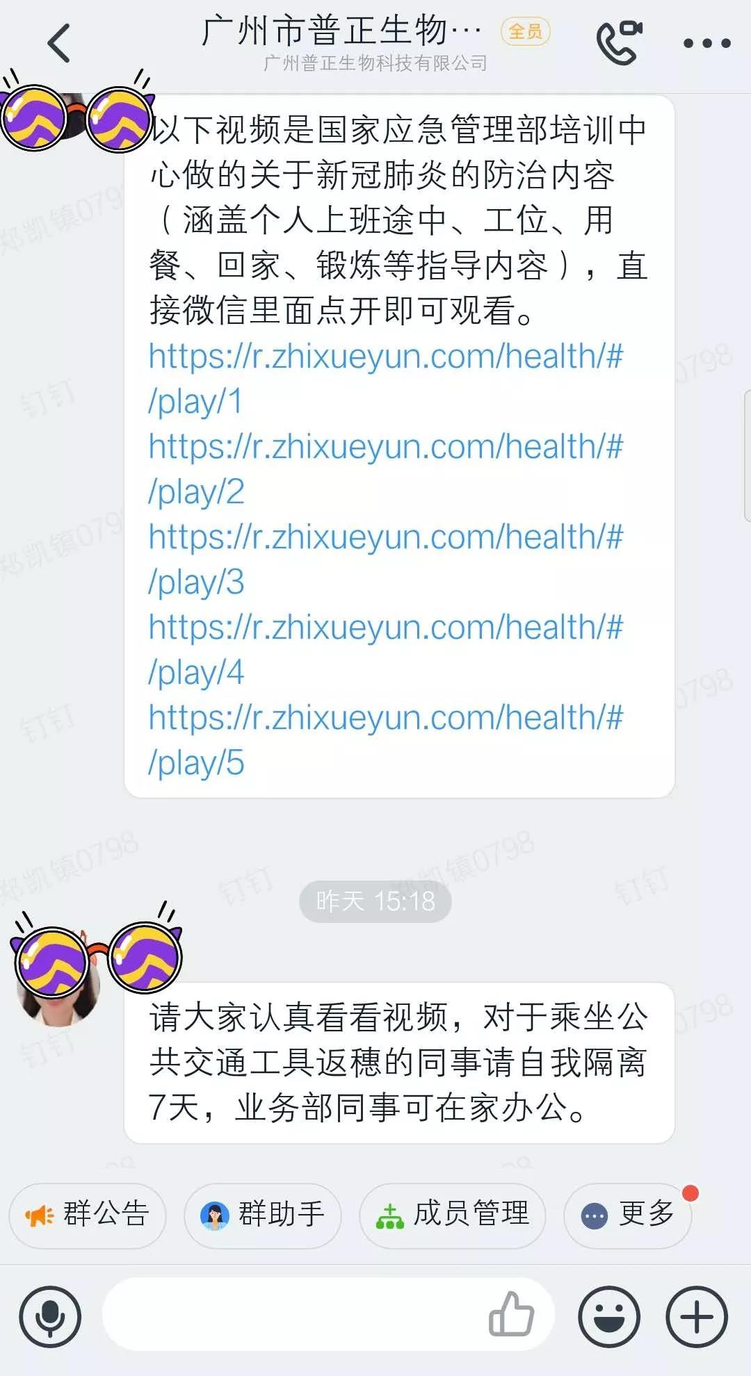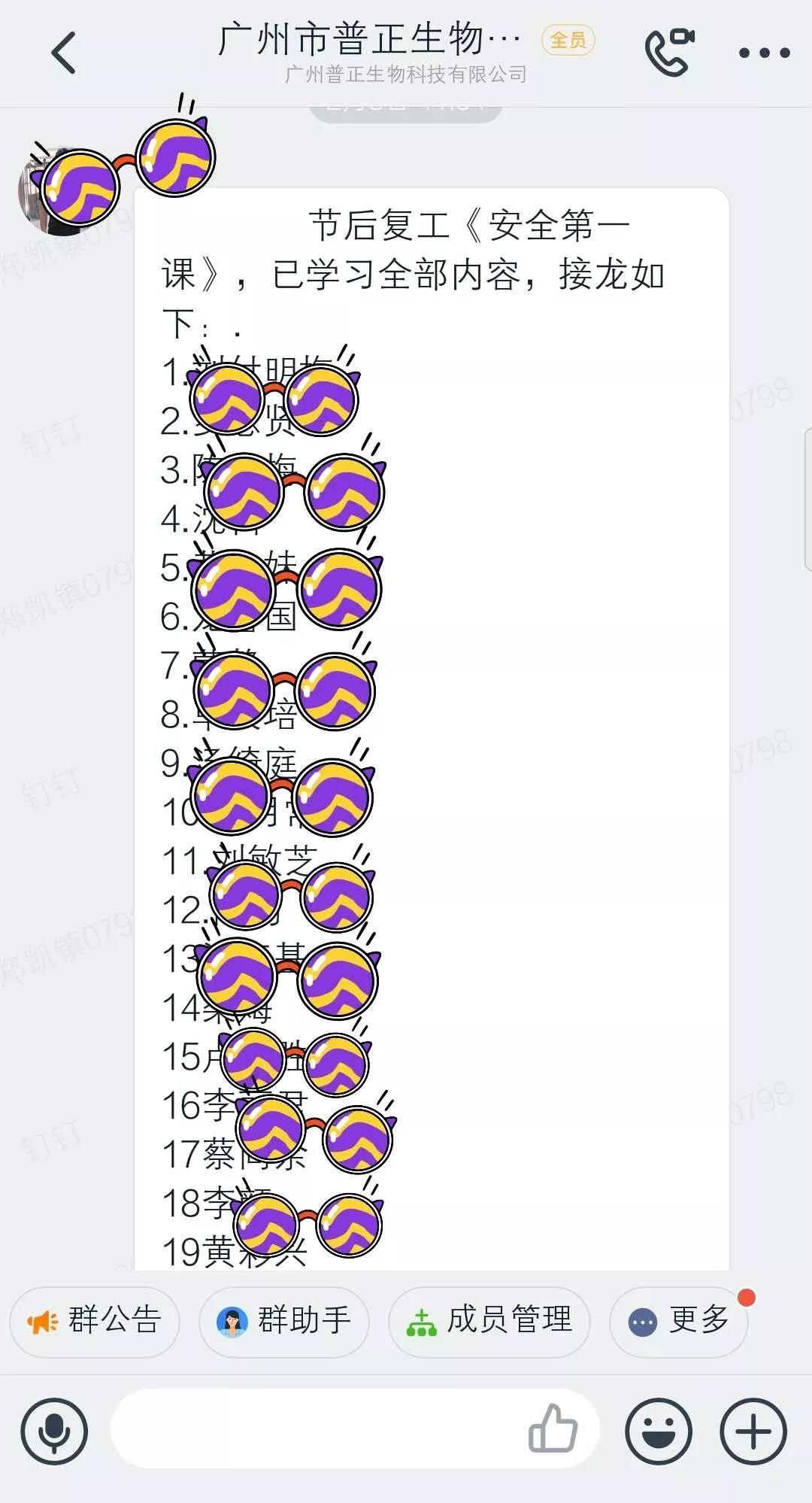 戰(zhàn)勝疫情,提高安全意識,用科學知識武裝自己才是王道,為此,公司在內部群內進行疫情防控知識的宣傳,在公司的宣傳欄內顯著位置也設置了新型冠狀病毒感染的肺炎相關防控知識宣傳專欄,更是組織全體員工登陸“黃埔應急”微信公眾號在線接受節(jié)后復產復工“安全第一課”相關防控知識,多渠道做好疫情防控宣傳教育工作。
