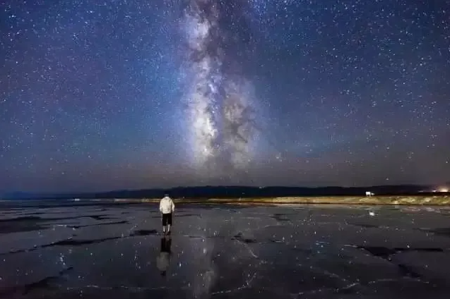 這是黑夜時(shí)的茶卡鹽湖,恢弘深邃